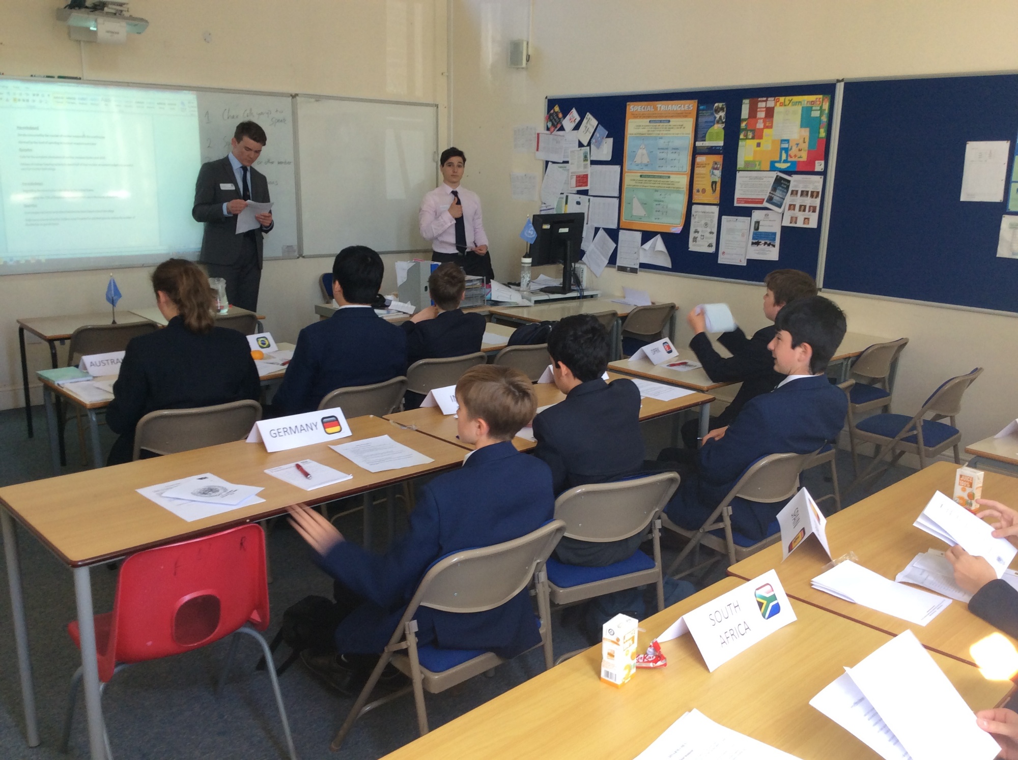 The aim of the morning was to introduce the younger students to the procedures, etiquette and formalities of the UN such as terms of address and the use of points of information and teach them how to structure their arguments in debate. We were extremely pleased to see that everyone embraced the challenges presented to them with high levels of enthusiasm and great consideration for the issues at hand.