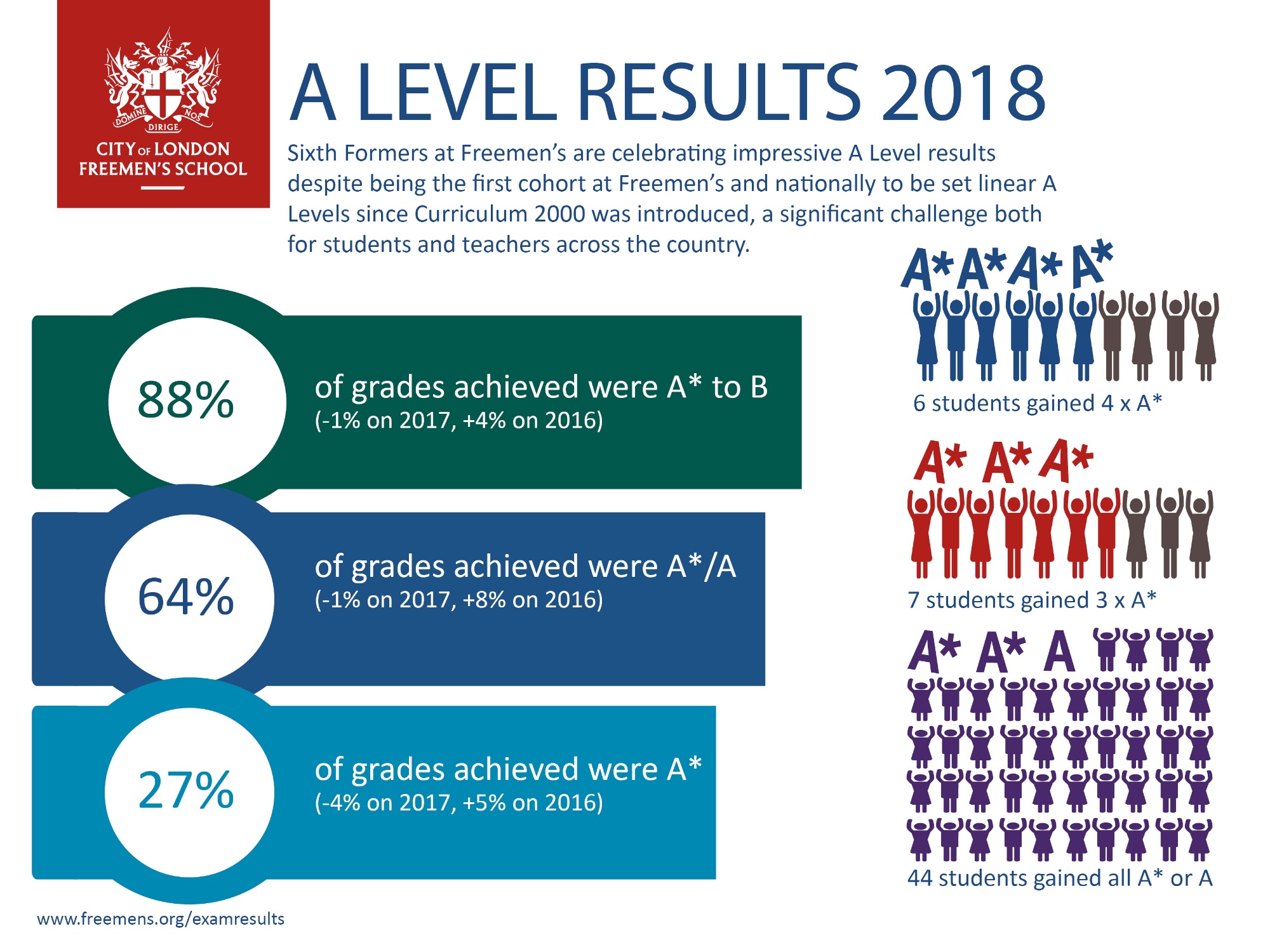 Last year’s cohort broke all records for the School in terms of A Level results and it is much to this year’s group’s credit that they have taken inspiration from those successes and pushed themselves to achieve such strong results. We should like to congratulate our students here not only on their impressive A level results, but also for the difference their contributions have made to sport, music and drama, as well as to the local community, while striving for this academic success: this is all part of the relevant education that we aim to provide at Freemen’s of which, of course, examination outcomes only play a part. It is inspiring to see what a group of well-rounded young people, extraordinary teachers, a very strong Sixth Form leadership team and collaborative parents can achieve when they work so closely together.