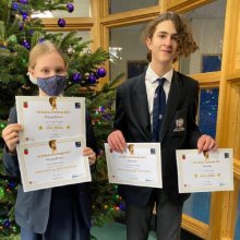 Well done to Samuel (Upper 4), Ferdinand and Oscar (Upper 5) who also received an honourable mention.