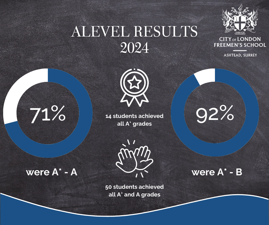 This year, Freemen’s students have set new records, with 92% of grades awarded at A* - B – the highest in my nine years. Furthermore, 71% of grades were A* - A, a percentage we haven’t seen since 2015. Perhaps most impressively, 31% of all grades achieved were A* – a level we have not reached since 2017.